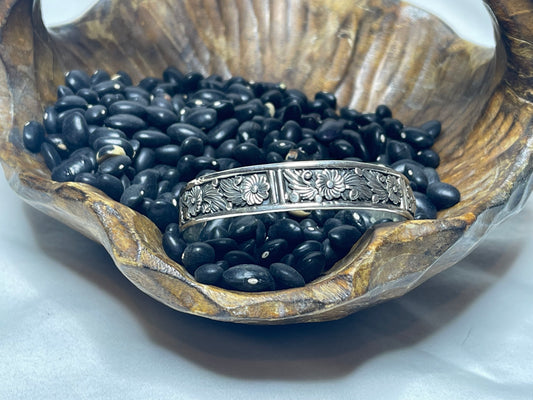 Silver Stacker Cuff Bracelet with Floral Pattern