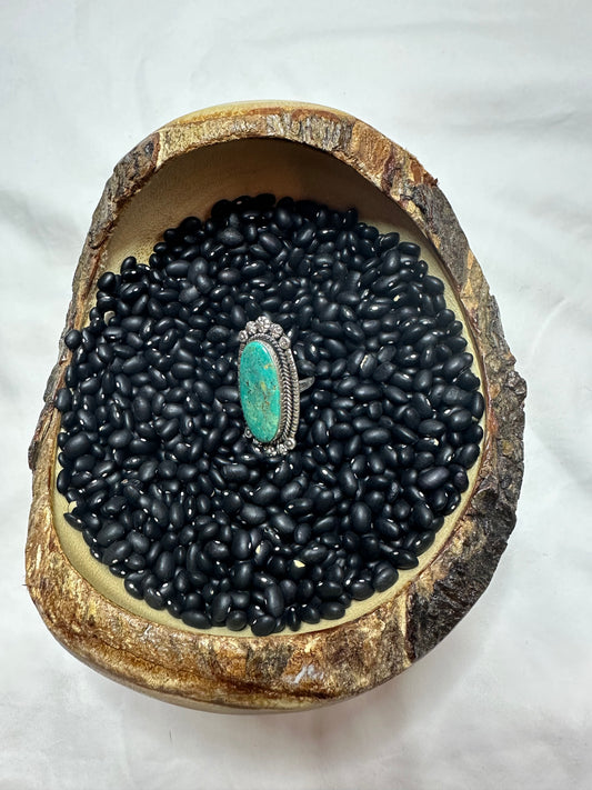 Single Stone Genuine Turquoise Sterling Silver Ring
