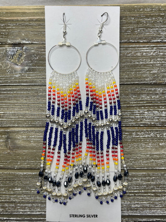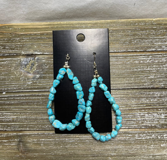 Beaded 1/2 Hoop Earrings Turquoise Blue
