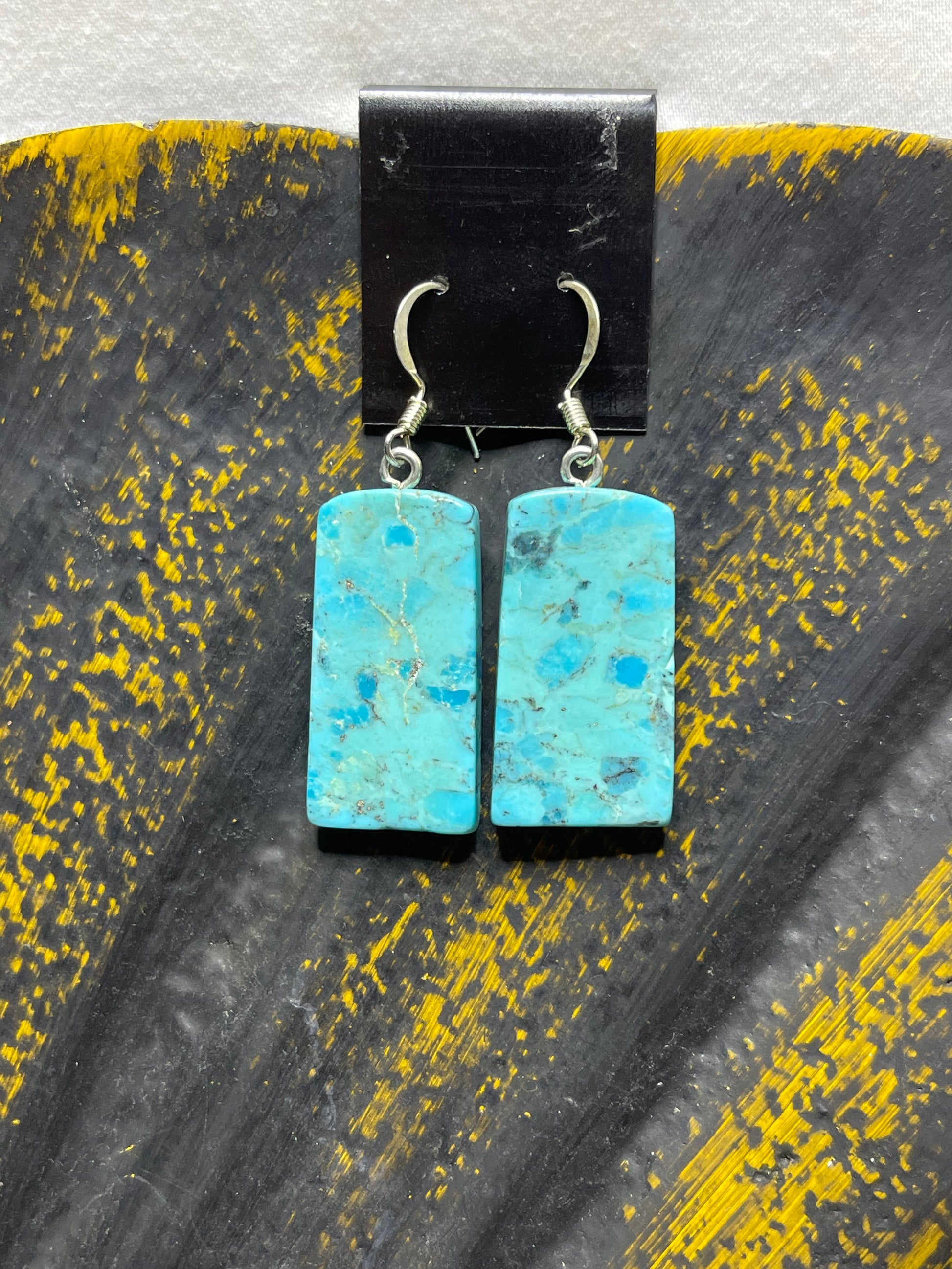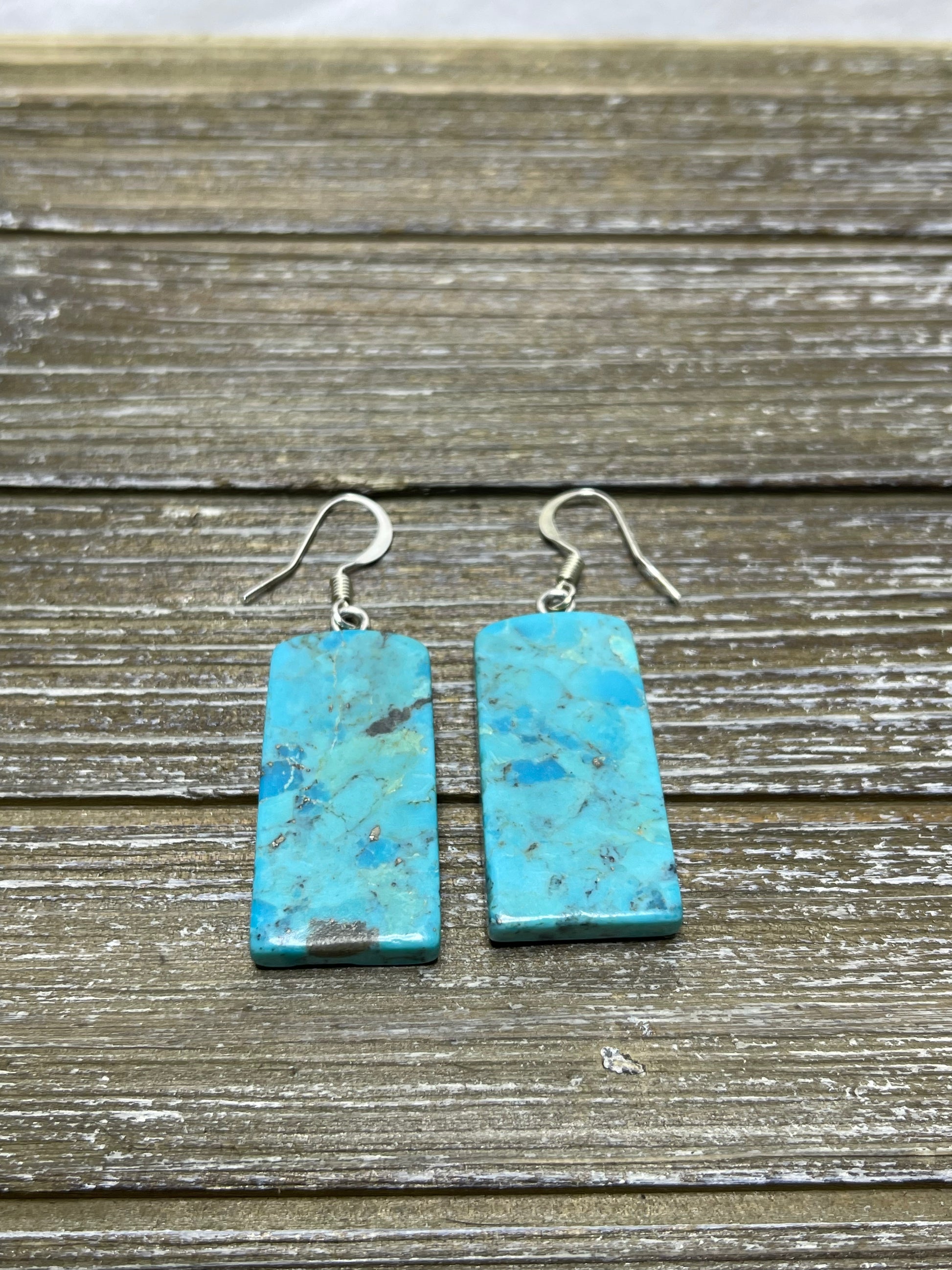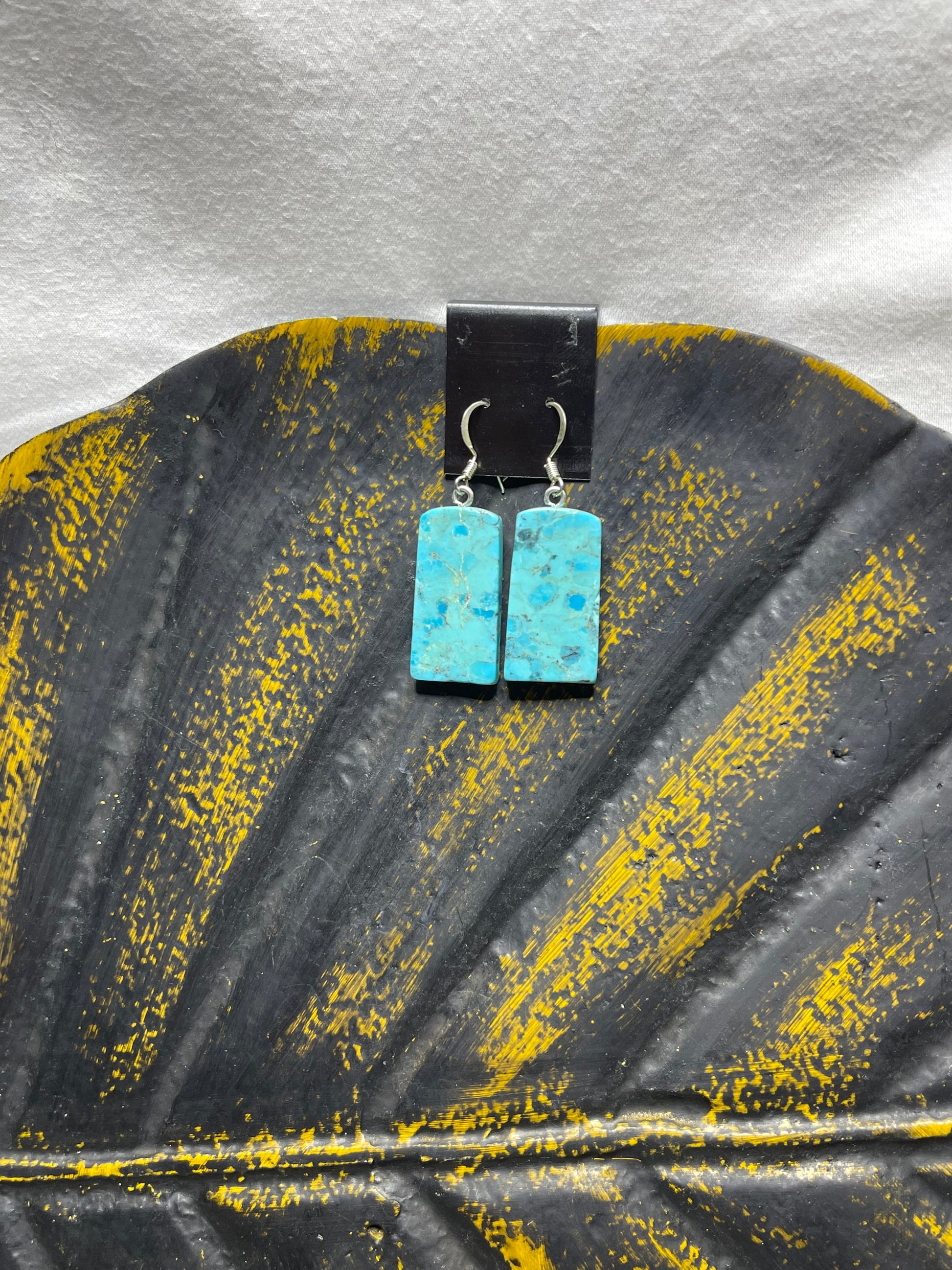 1.2 inches in length, gorgeous slab earrings with a breathe taking turquoise color!!