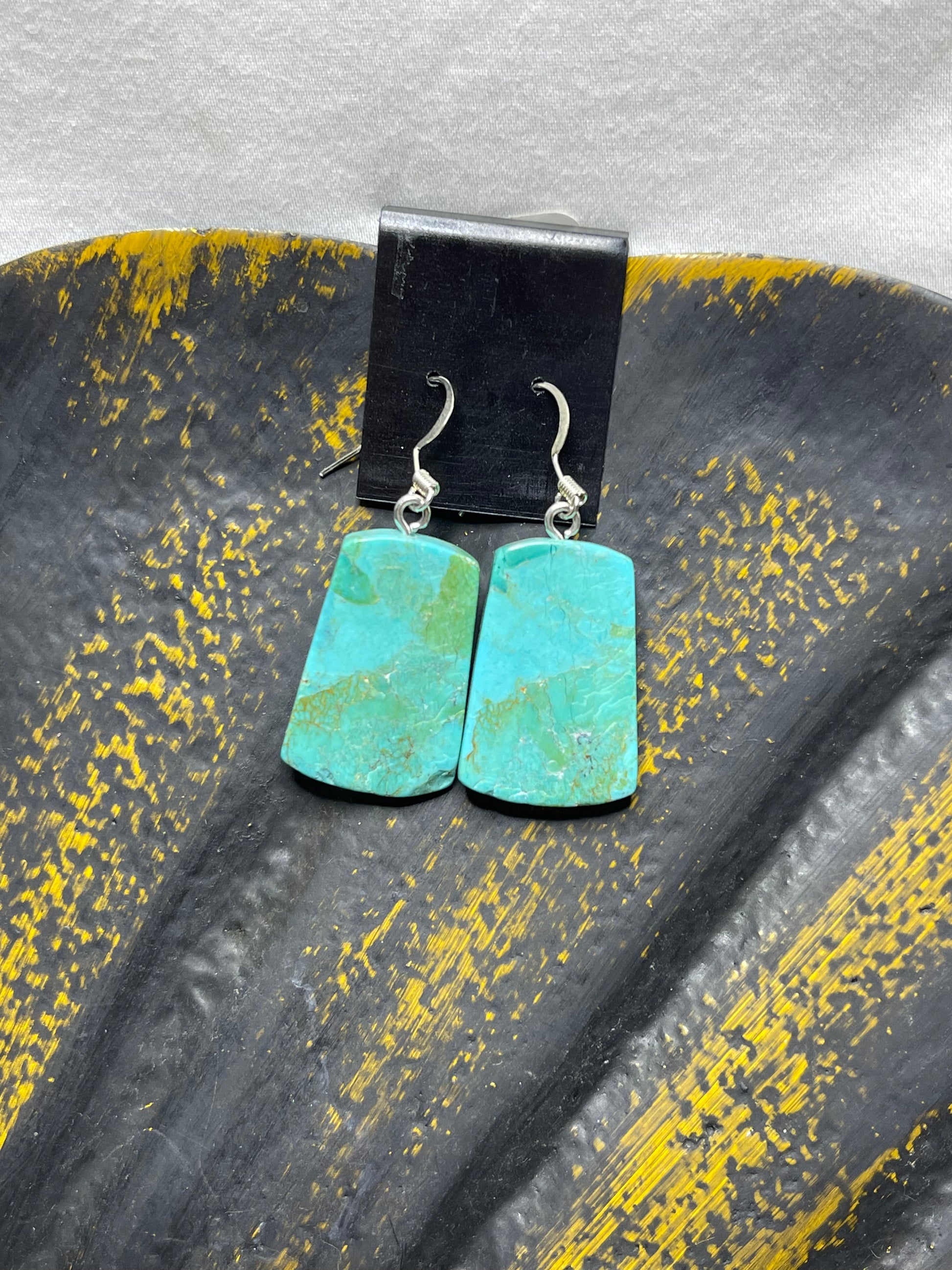 1.2 inches in length, stunning slab earrings with gorgeous turquoise stones!