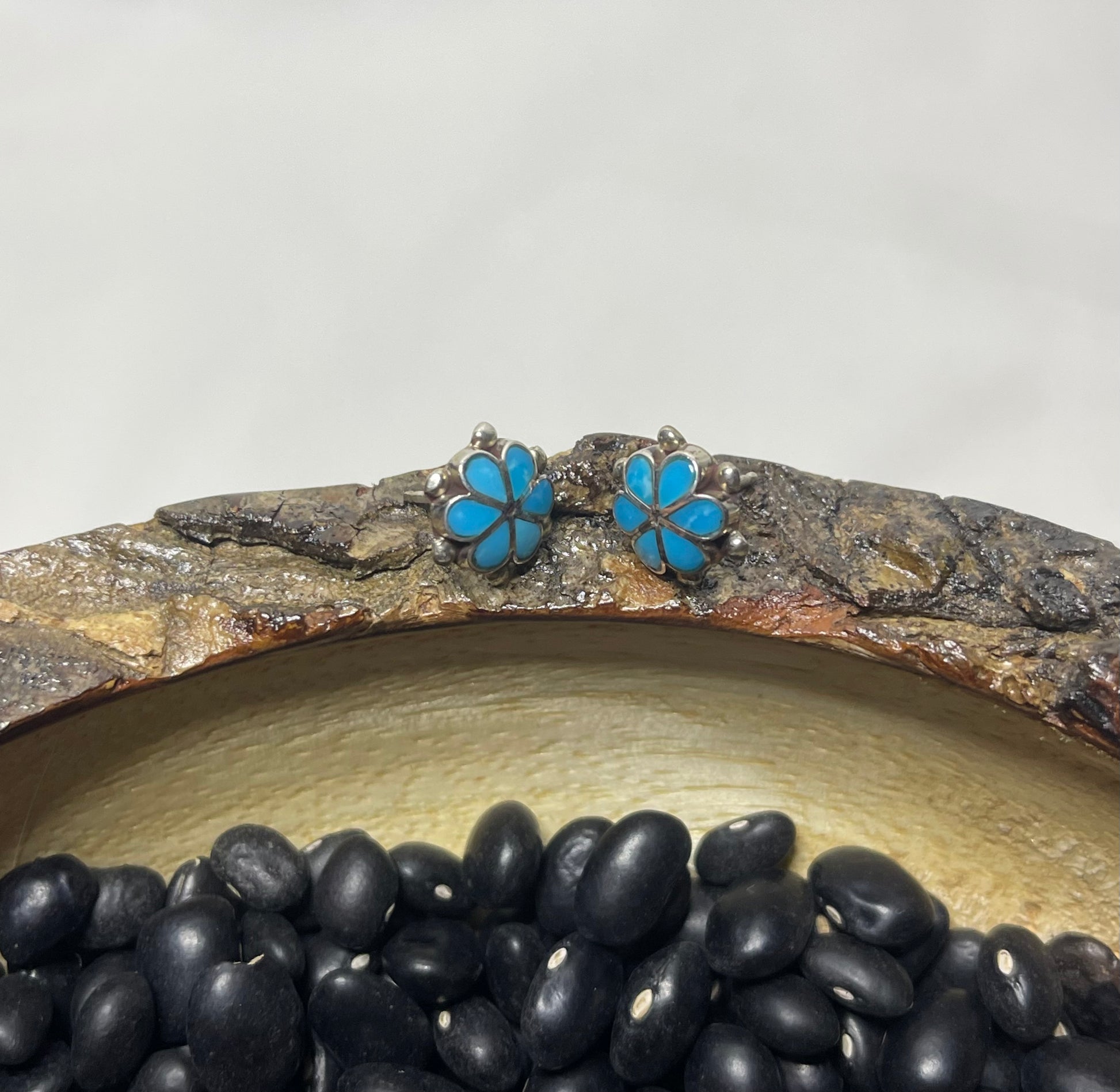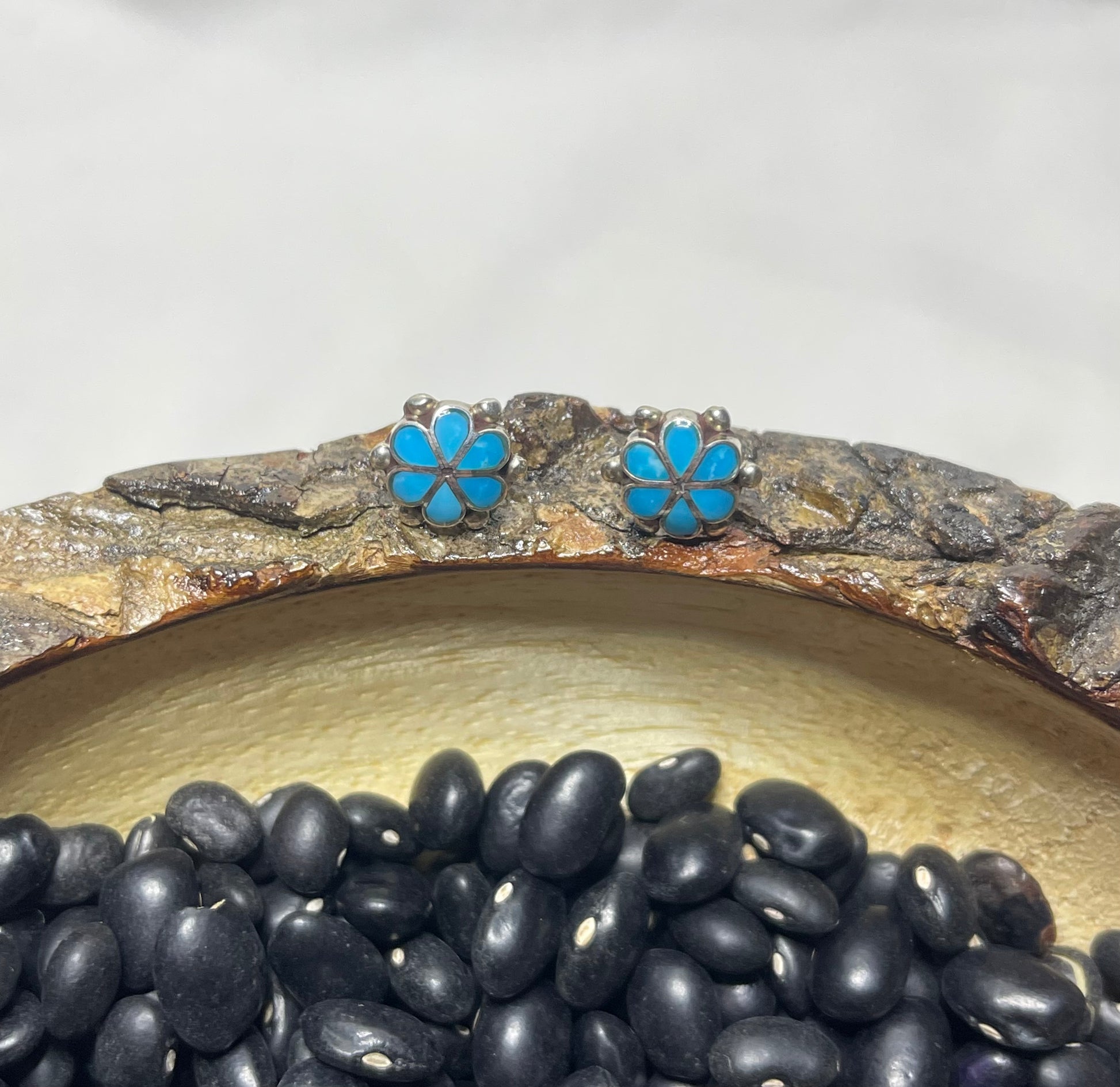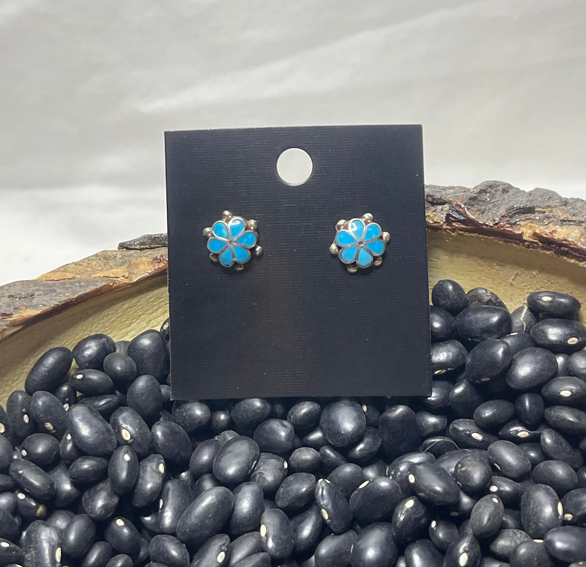 1 cm in width and length, these beautiful small flower earrings are sure to catch an eye with the gorgeous turquoise stone flower pattern!