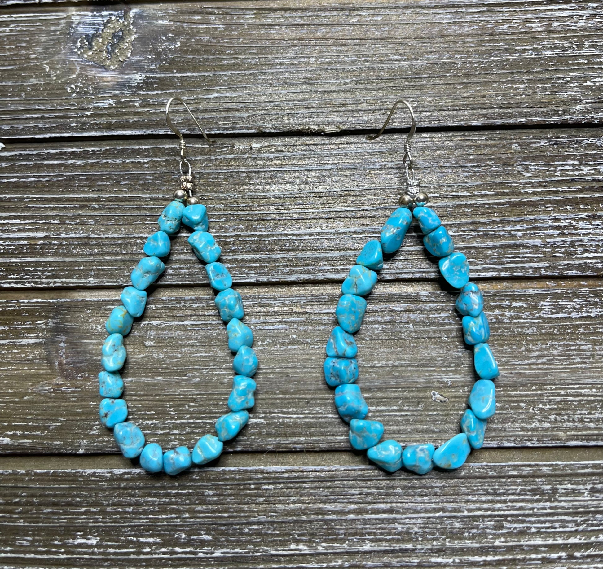 2 inches in length, gorgeous dangle earrings with beautiful vibrant turquoise nuggets!!