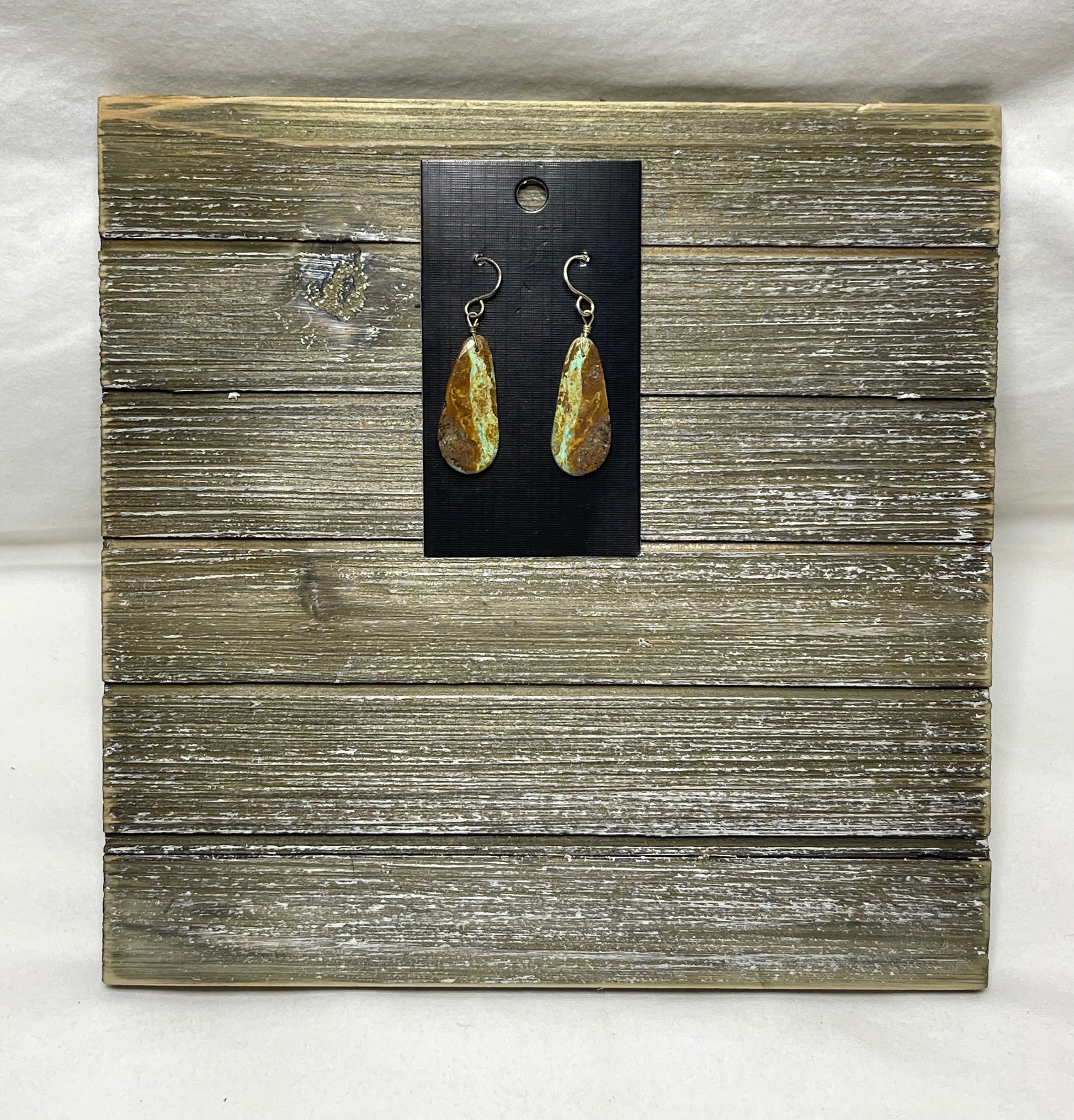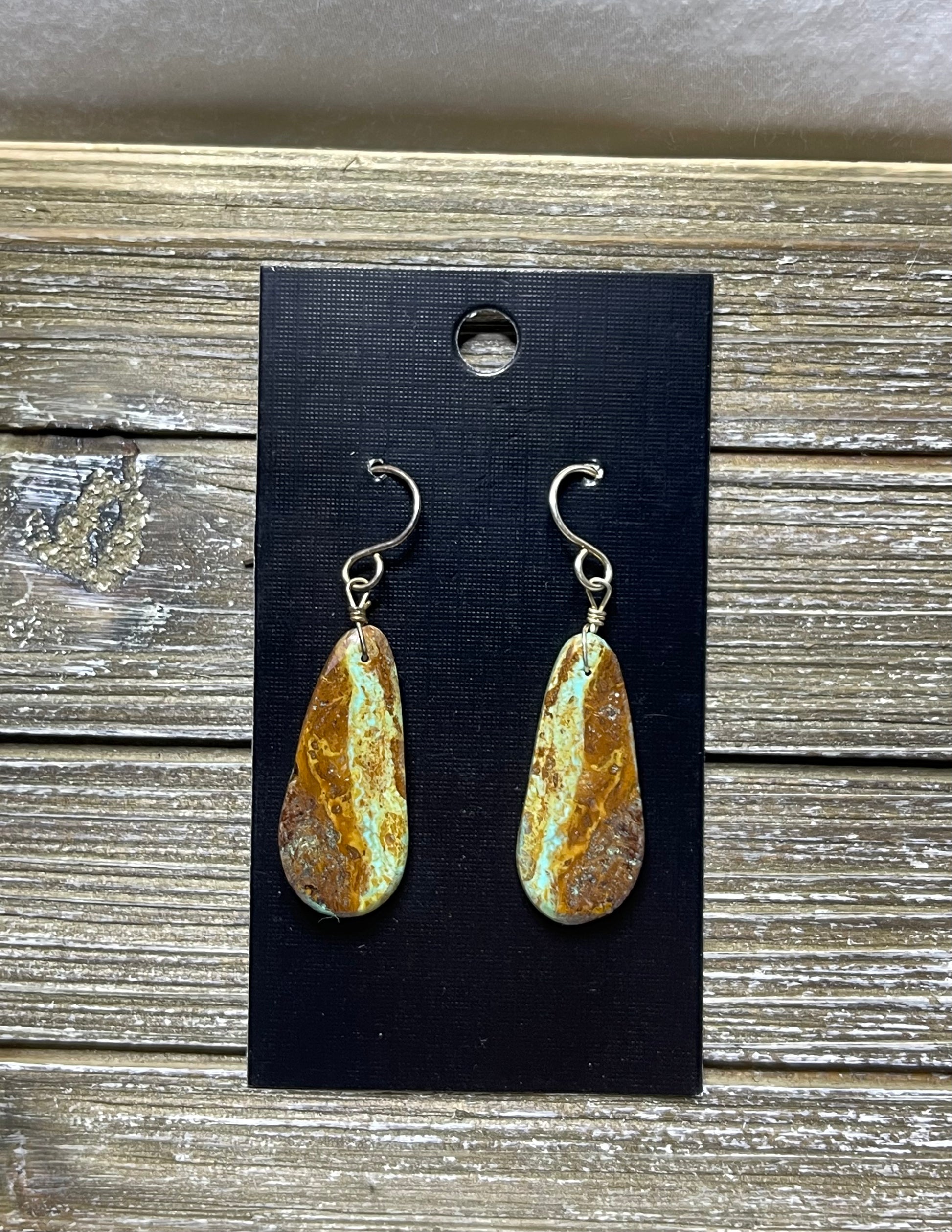 1.2 inches in length, elegant slab earrings with a stunning brown turquoise stone!!