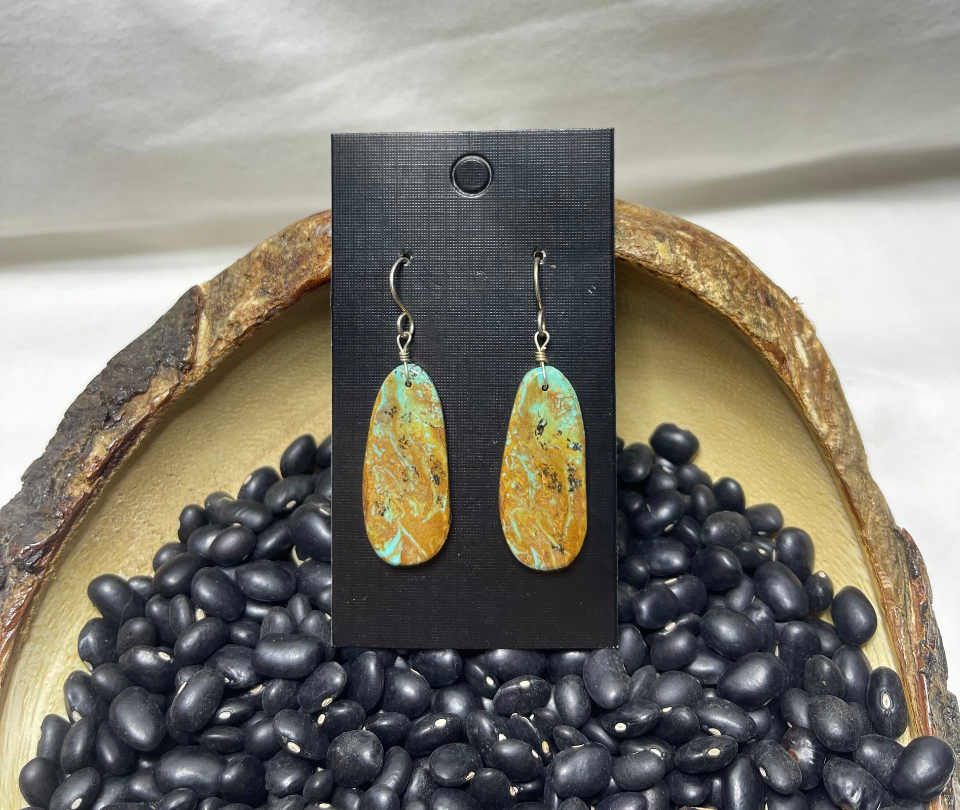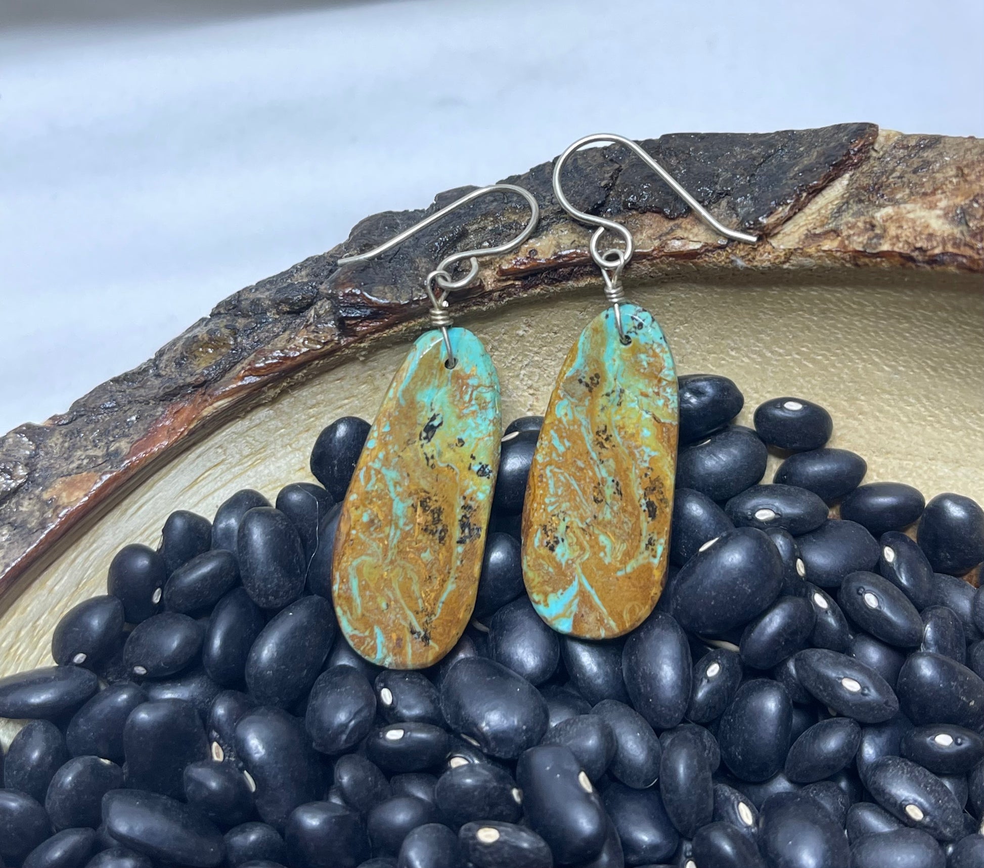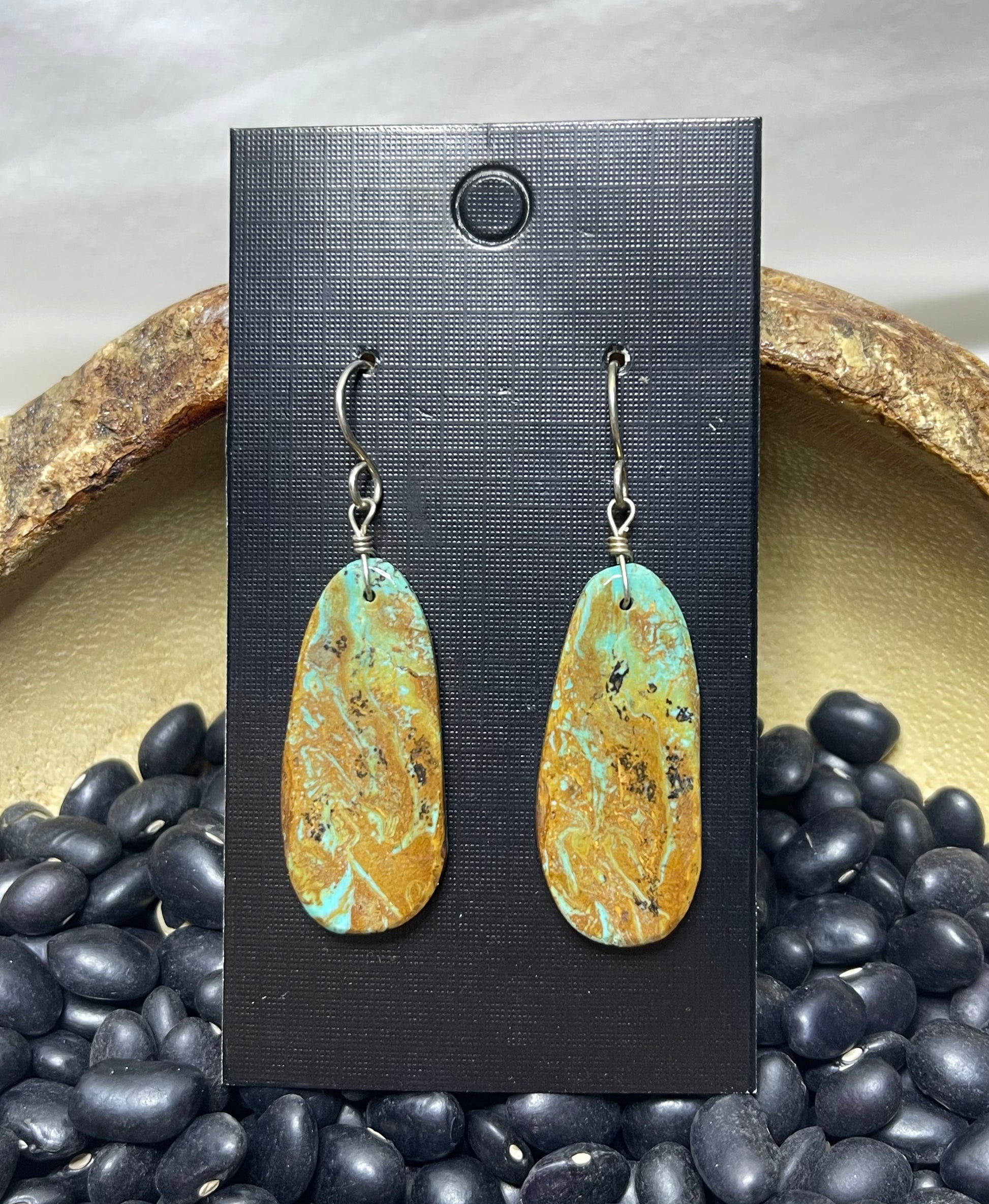 1.3 inches in length, beautiful slab earrings with a gorgeous green turquoise stone!