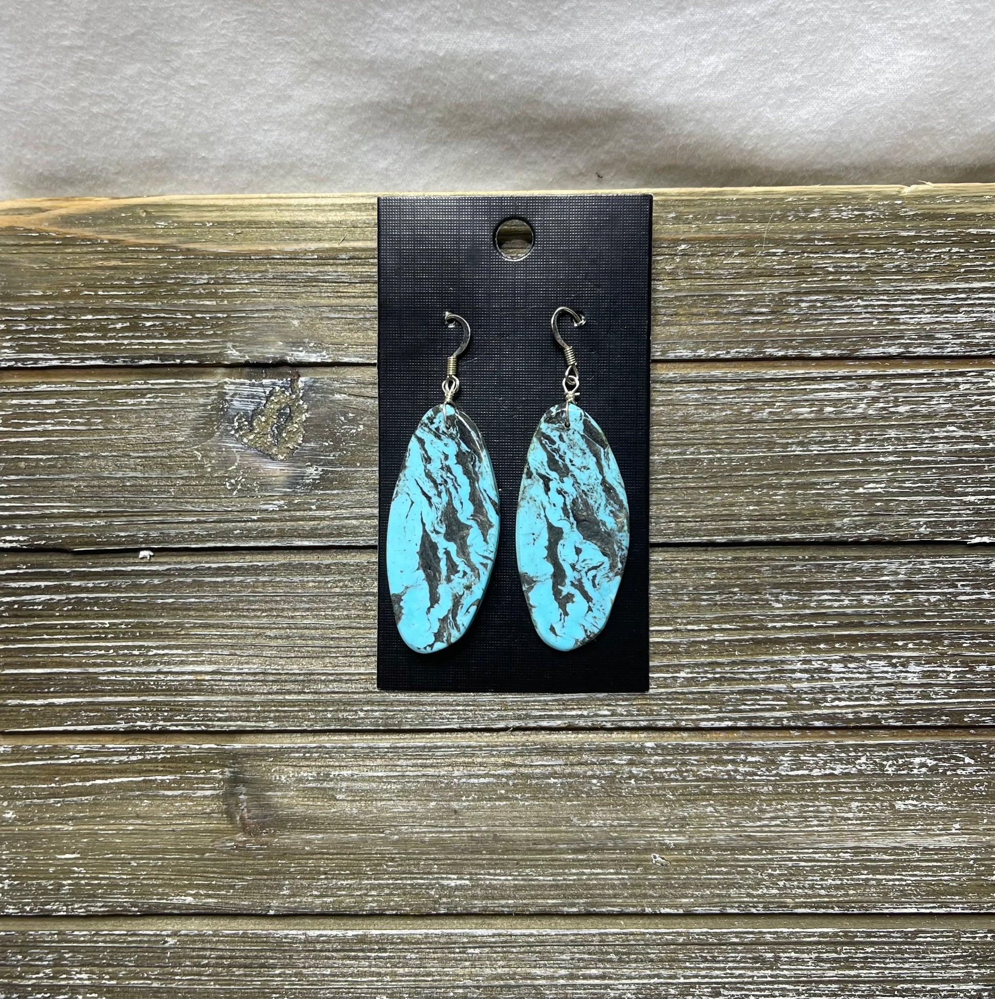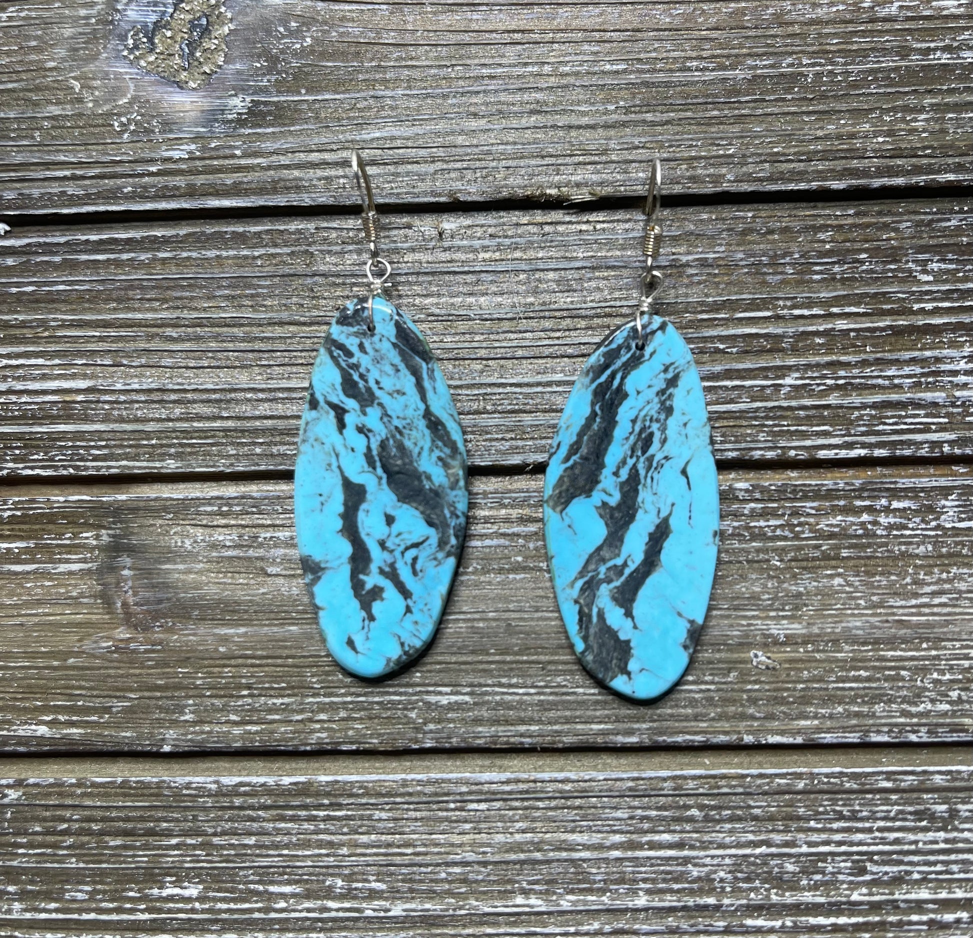 2 inches in length, gorgeous slab earrings with a turquoise color and elegant black matrix!!