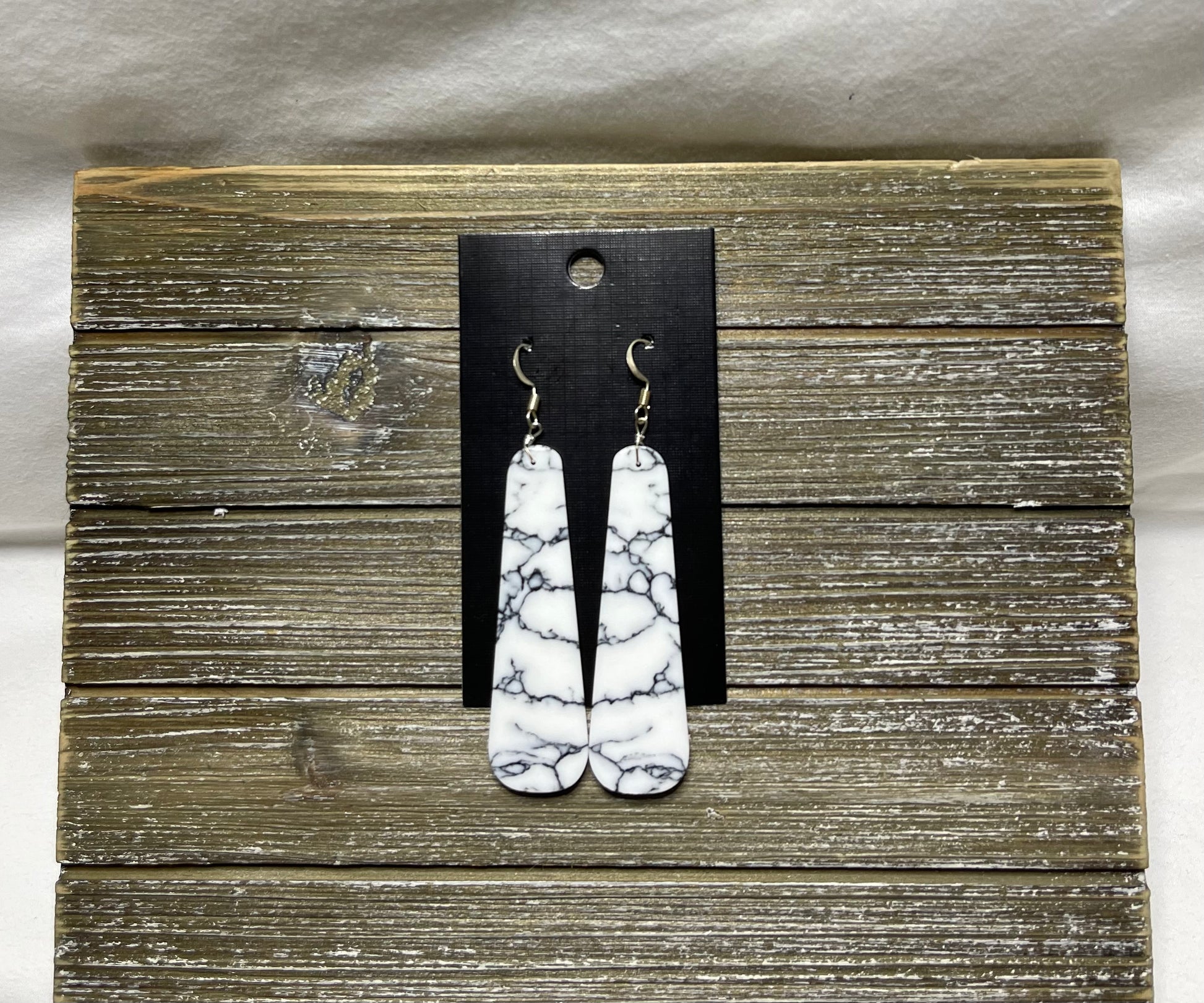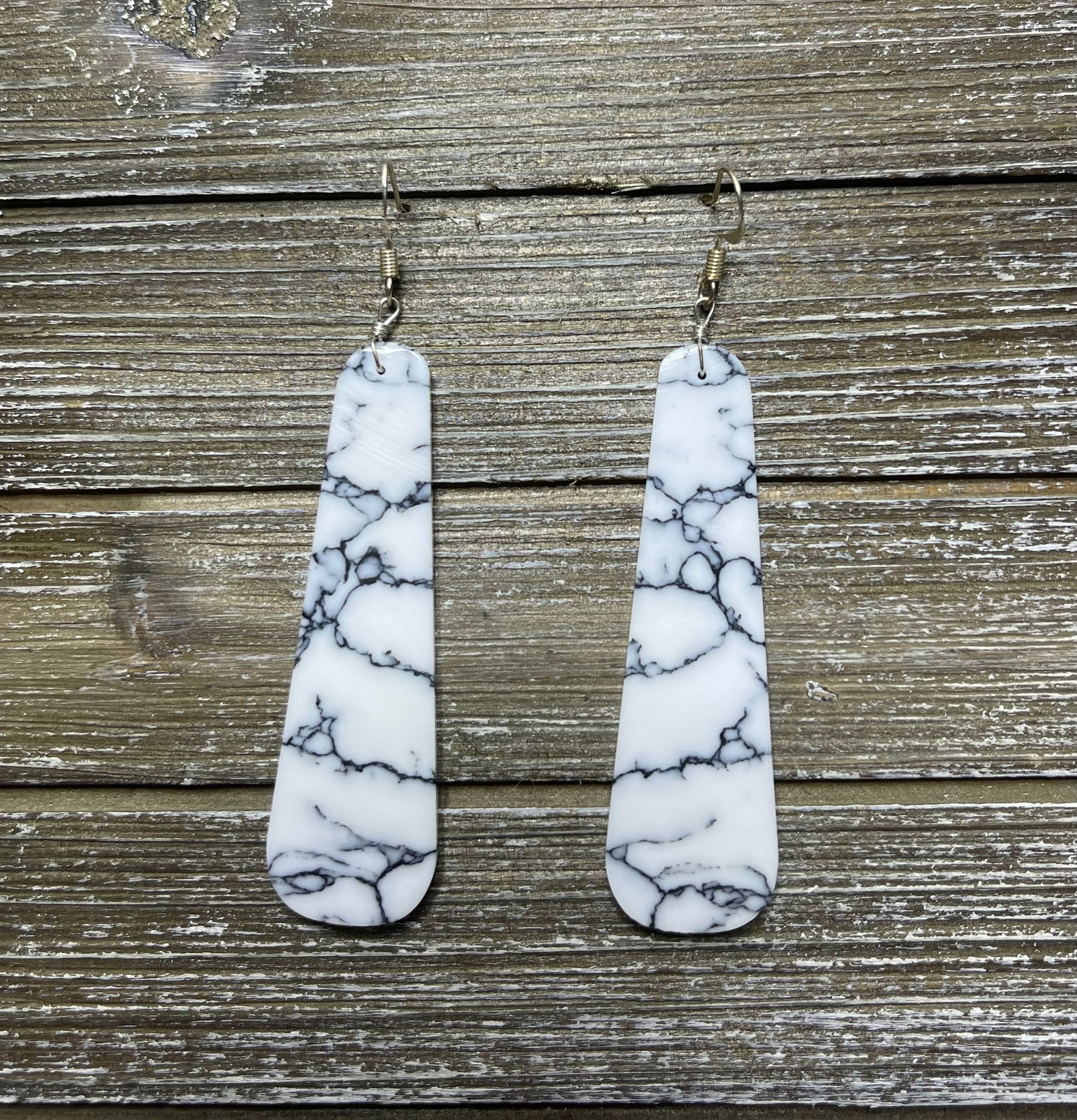 2.5 inches in length, beautiful white turquoise slab earrings!