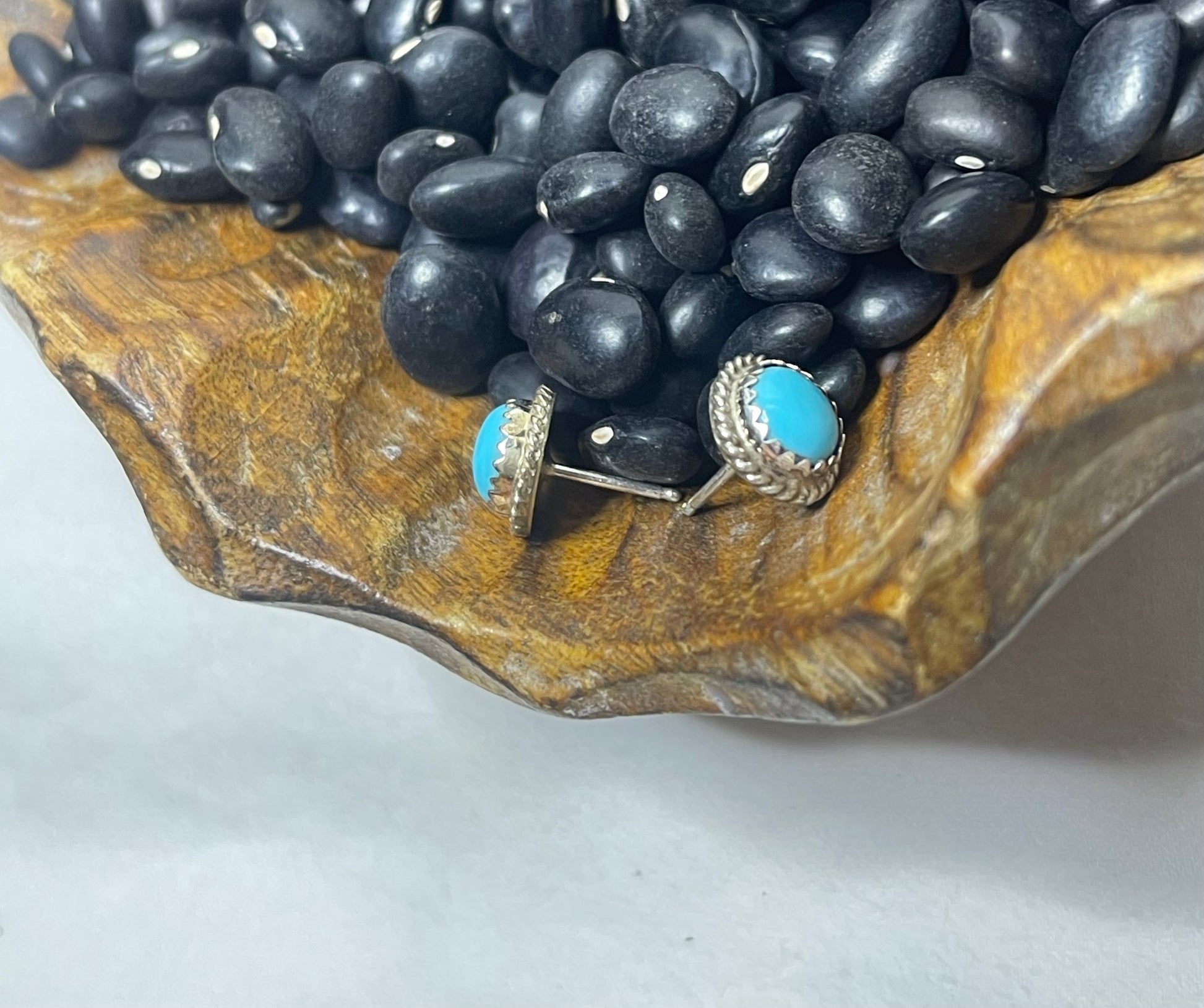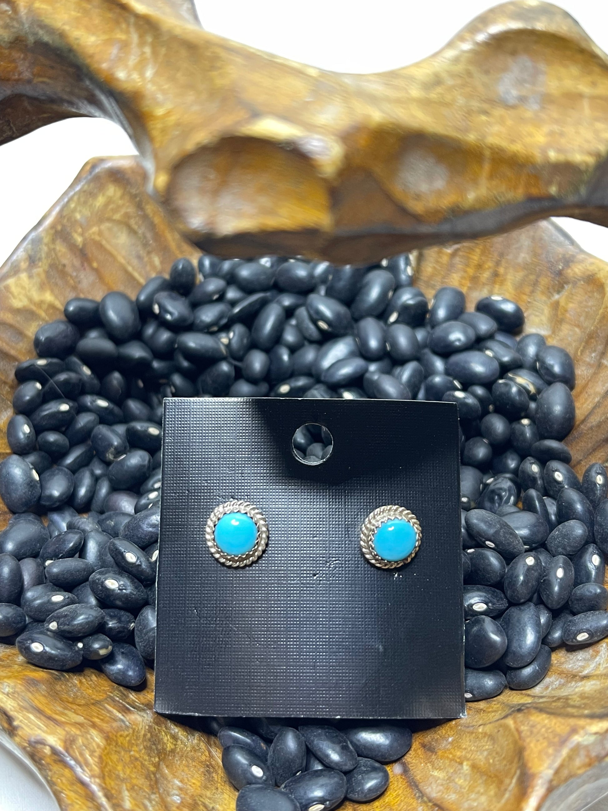 These small turquoise stud earrings are stunning, with a beautiful turquoise stone in the middle of embellishments!