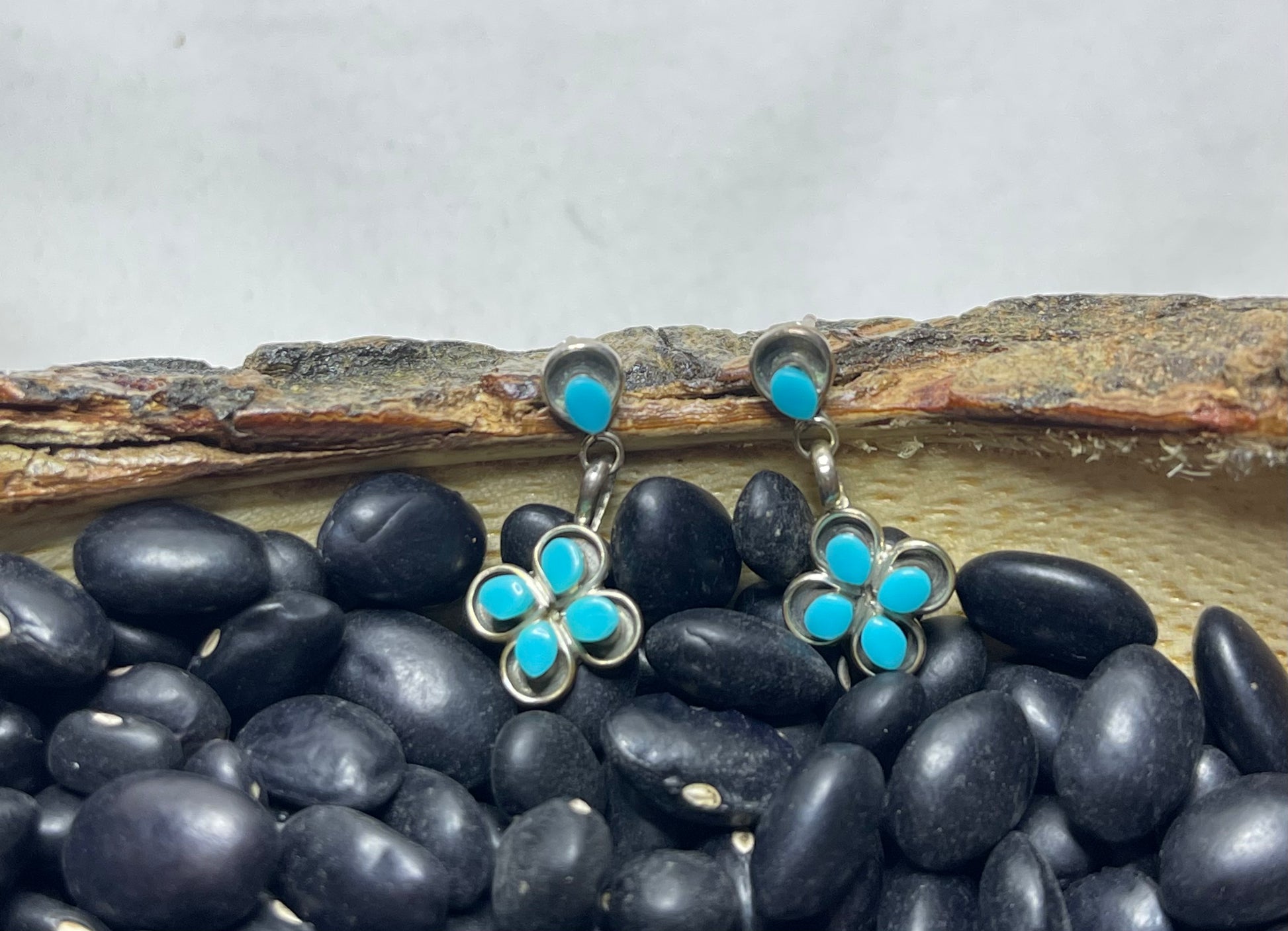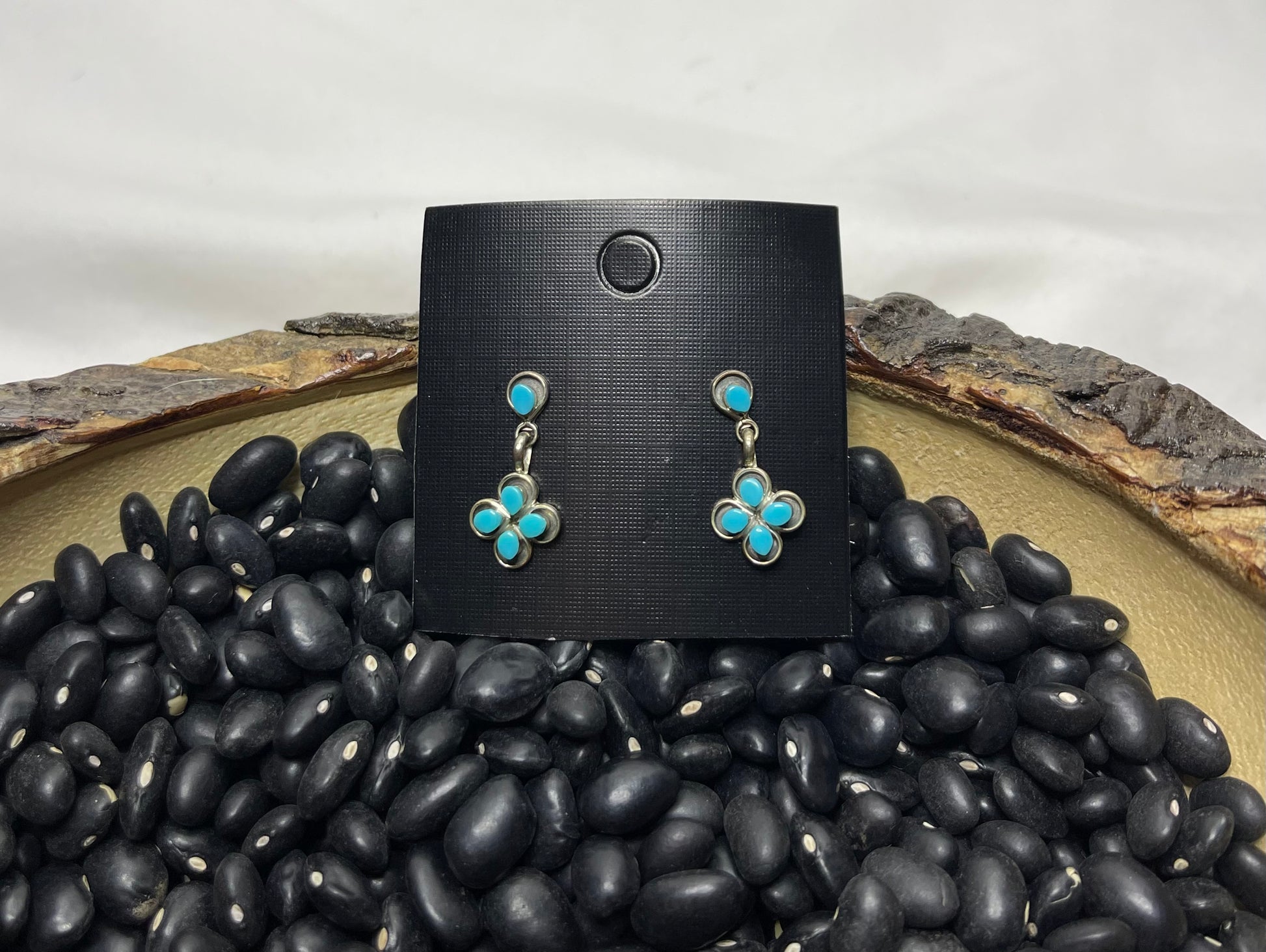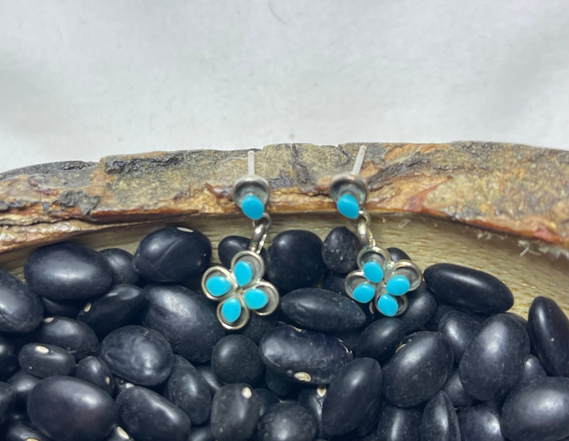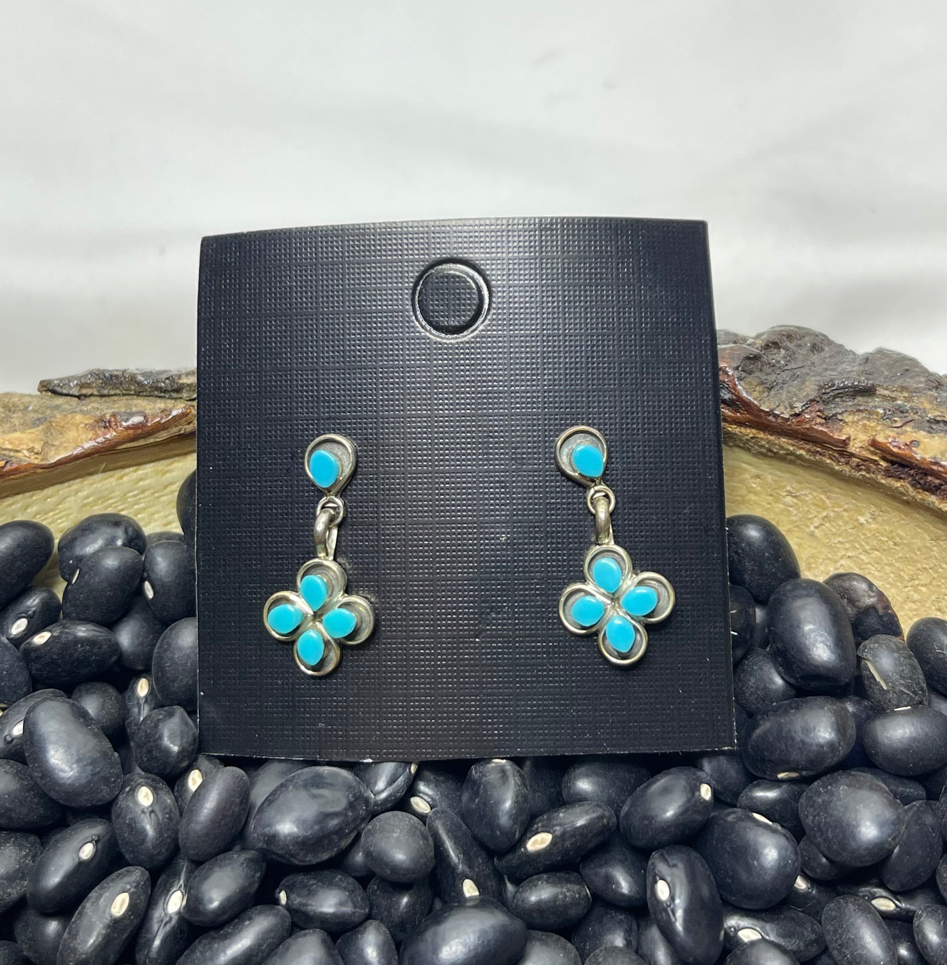 2 cm in length, these stunning flower dangle earrings are sure to catch an eye with the beautiful turquoise stone flower pattern!