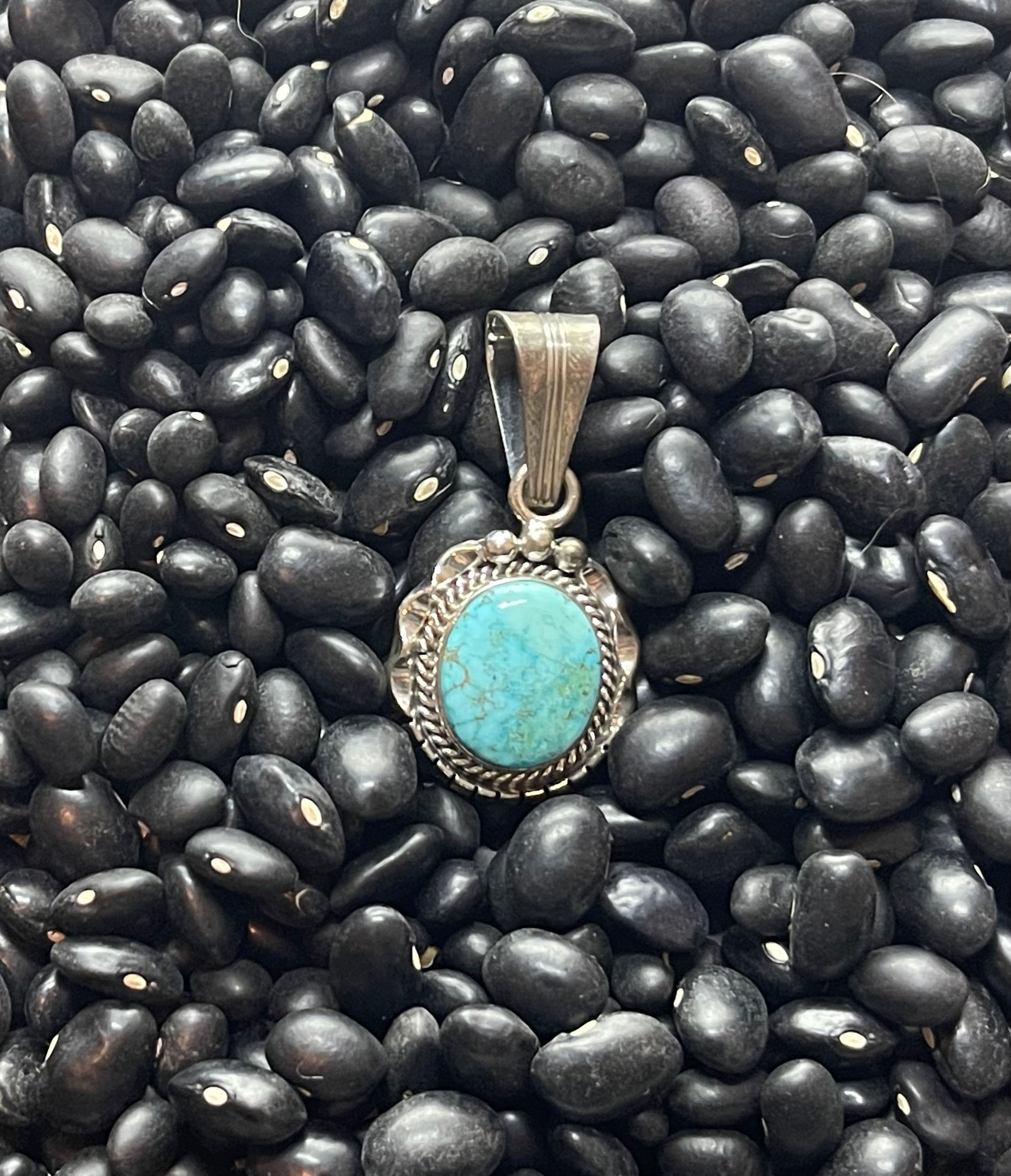 This is a beautiful blue turquoise pendant with an elegant brown matrix engulfed in beautiful embellishments.