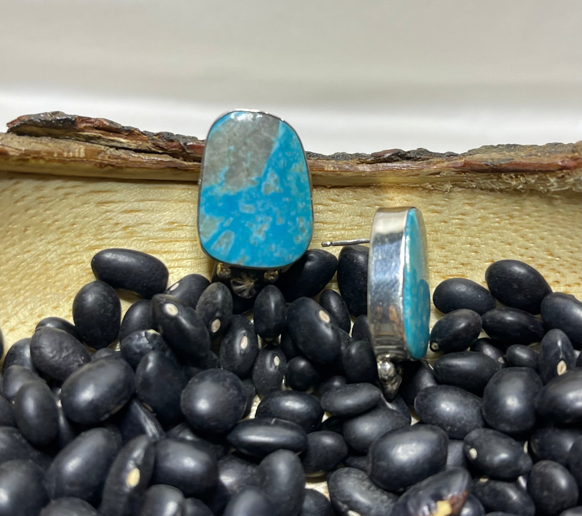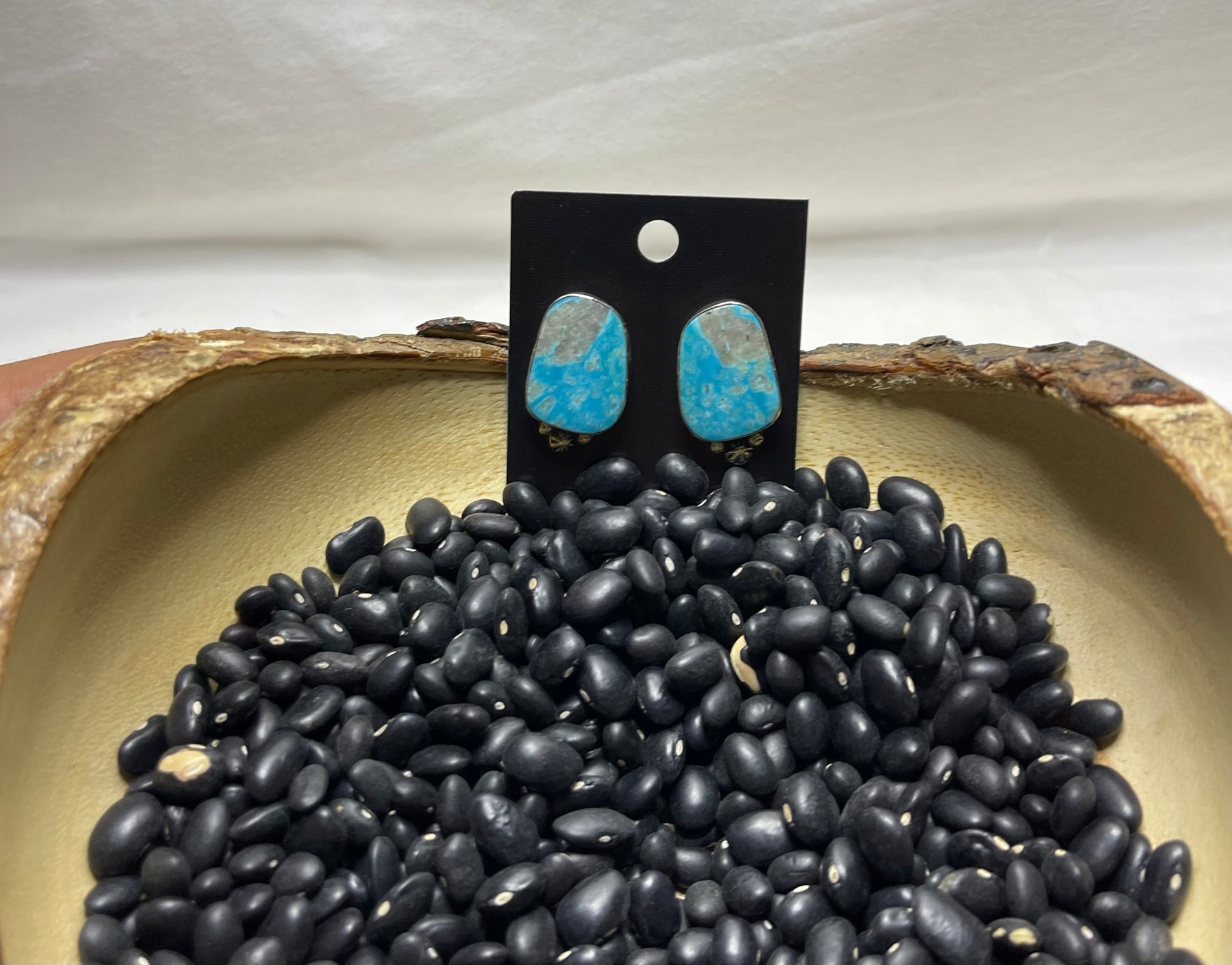 2.7 cm in length, these stunning sterling silver turquoise earrings have a flawless turquoise stone with beautiful embellishments on the bottom.
